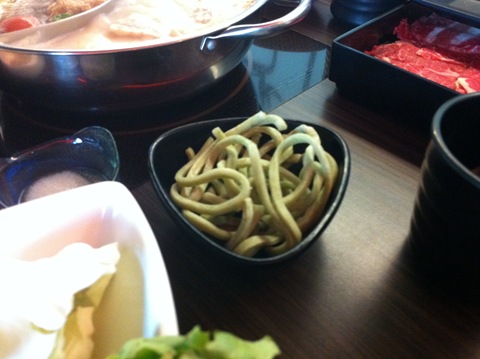 然後醬料是酸酸的蒜味火鍋料,還有甜的花生沾醬,說老實話還是比較喜歡吃沙茶醬